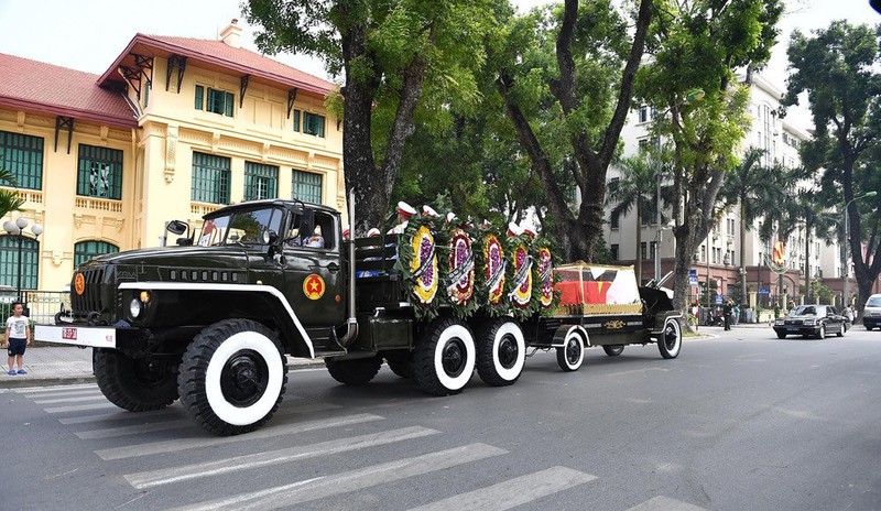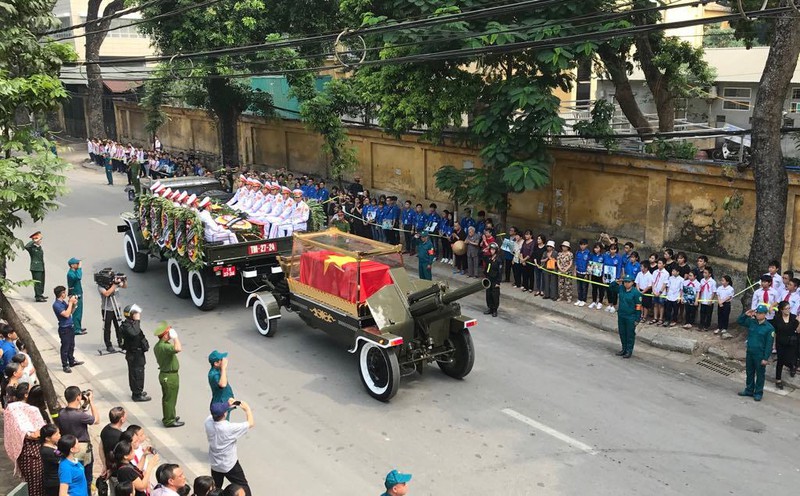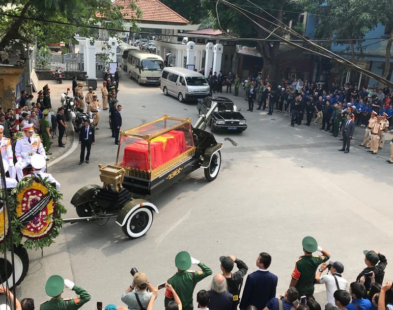 Sau đó, đoàn xe tang rước linh cữu đi qua các tuyến phố Lò Đúc, Phan Chu Trinh, Tràng Tiền, Hàng Khay, Tràng Thi, Điện Biên Phủ, Hoàng Diệu, Hoàng Văn Thụ, Độc Lập, Chu Văn An, Nguyễn Thái Học, Lê Duẩn, Giải Phóng, Ngọc Hồi, Ngũ Hiệp, Đông Mỹ, Liên Ninh (huyện Thanh Trì).