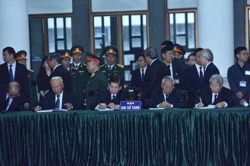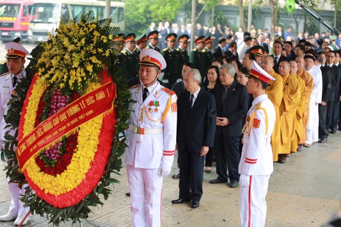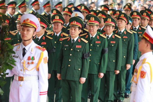 Đoàn các cơ quan TƯ do Chánh Văn phòng TƯ Đảng Nguyễn Văn Nên làm trưởng đoàn vào viếng. Đoàn Quân khu 7 do Trung tướng Võ Minh Lương, Tư lệnh Quân khu 7 làm trưởng đoàn vào viếng.Ảnh: Thanh Tùng |