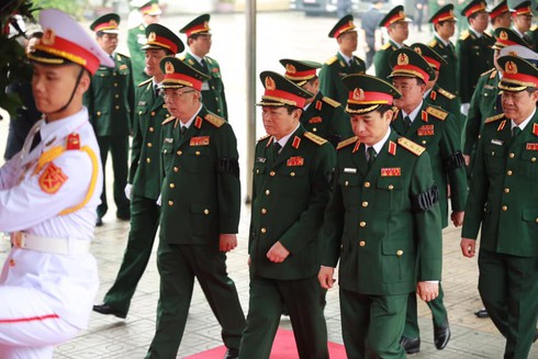 Đoàn đại biểu Bộ Quốc Phòng do Bộ trưởng Ngô Xuân Lịch làm trưởng đoàn vào viếng. (Ảnh: Xuân Phú) |
