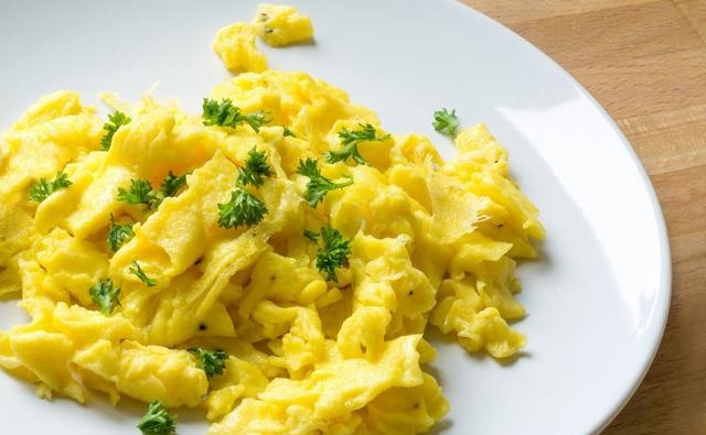 - Trứng chưng trên lửa lớn, đảo nhanh tay, khi trứng chín tới và đặc lại phải nhanh chóng bắc ra khỏi chảo, nếu không đun quá lâu trứng sẽ bị khô, mất độ mềm.