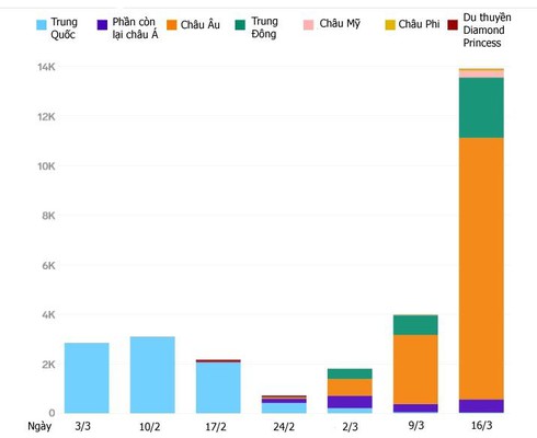 Các ca nhiễm mới Covid-19 hàng ngày ở Trung Quốc so với phần còn lại trên thế giới. Nguồn: WHO |