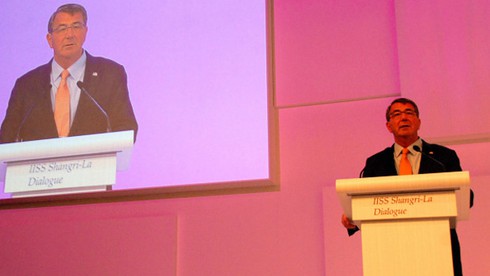 Bộ trưởng Quốc phòng Mỹ Ash Carter phát biểu tại Shangri-La hôm 30/5. |