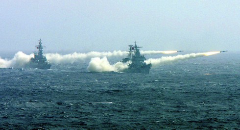 Tàu chiến của hải quân Trung Quốc tham gia một cuộc tập trận trên Biển Đông. |