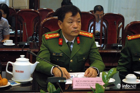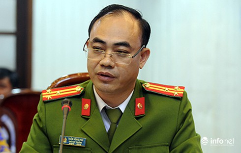Thượng tá Trần Hồng Phú thông tin với báo chí. |
