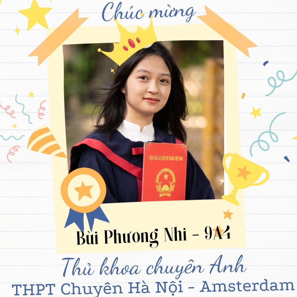Em Bùi Phương Nhi (học sinh lớp 9A4) đạt tổng điểm xét tuyển chuyên là 47,15 (Văn 8,75; Toán 9; Ngoại ngữ 10, điểm tiếng Anh chuyên 9,7) và trở thành thủ khoa chuyên tiếng Anh của Trường THPT Chuyên Hà Nội - Amsterdam. Phương Nhi cũng trúng tuyển khối chuyên tiếng Anh của 2 trường khác là THPT Chuyên Sư phạm và THPT Chuyên Ngoại ngữ.
