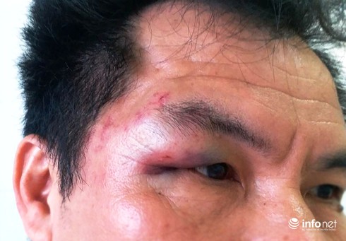 Vùng thái dương, mắt phải của PV Trần Cường bị đánh bầm tím, sưng húp. (Ảnh. NVCC) |