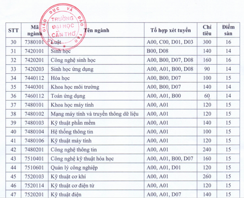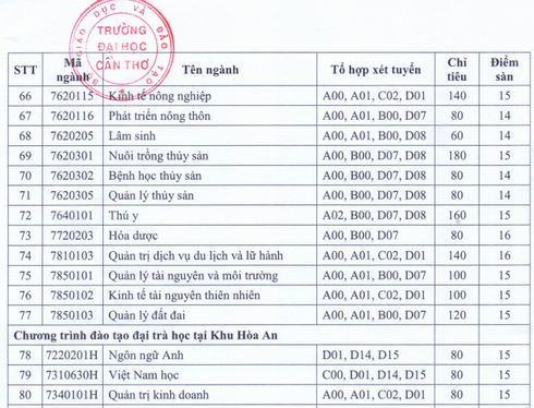 Cụ thể điểm xét tuyển với từng ngành tại ĐH Cần Thơ như sau: