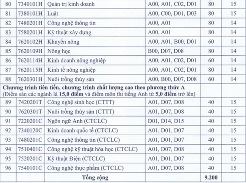 Thí sinh có tổng điểm 3 môn thi theo tổ hợp cộng với điểm ưu tiên khu vực, đối tượng (nếu có) từ điểm sàn trở lên là có đủ điều kiện đăng ký xét tuyển vào ngành tương ứng. Đối với các ngành thuộc chương trình tiên tiến và chương trình chất lượng cao thì ngoài điều kiện đạt điểm sàn nêu trên, thí sinh phải có điểm môn thi tiếng Anh từ 5,0 điểm trở lên thì mới đủ điều kiện đăng ký xét tuyển.