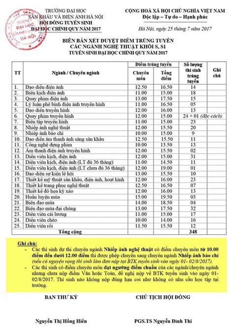Trường ĐH Sân khấu điện ảnh Hà Nội vừa công bố điểm chuẩn 2017.