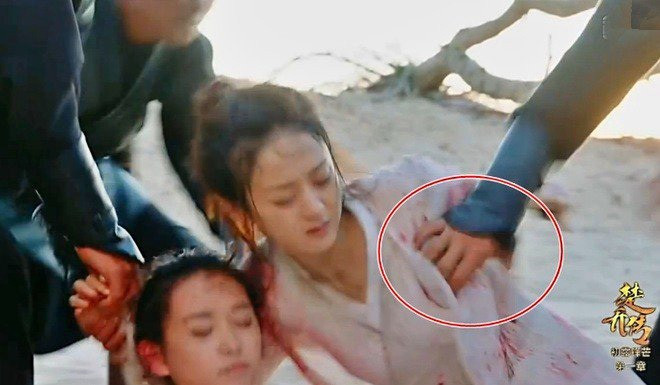 Trong “Sở Kiều truyện” Triệu Lệ Dĩnh cũng từng bị diễn viên quần chúng động chạm vòng một. Đây là phân đoạn khi nhân vật Sở Kiều (Triệu Lệ Dĩnh đóng) bị lạc vào trận săn người. Do các diễn viên đang trong cảnh quay nên không rõ hành động này là cố ý hay vô tình.