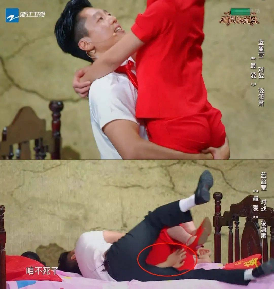 Trên sân khấu của show "Sự ra đời của một diễn viên", Lăng Tiêu Túc cũng được cho là cố tình động chạm vào bộ phận nhạy cảm của Lam Doanh Oánh.
