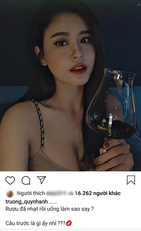 Mới đây trên trang cá nhân của mình, nữ ca sĩ Trương Quỳnh Anh đăng bức ảnh sexy của bản thân kèm dòng trạng thái ẩn ý “…Rượu đã nhạt thì uống làm sao say. Câu trước là gì ấy nhỉ?”, nhiều khán giả tỏ ra bất ngờ về việc có thể chồng cũ của cô nàng đã đến tìm cô để “nối lại tình xưa” vì câu trước đó là “người đến tìm tôi nói lời xưa cũ. Hậu ly hôn Tim, nữ ca sĩ được đánh giá là ngày càng mặn mà, sắc sảo đúng như câu nói “phụ nữ chỉ đẹp khi không thuộc về ai”. |