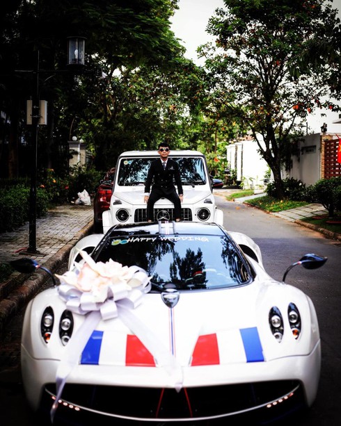 Mới đây, trên trang cá nhân, đại gia Minh nhựa bất ngờ khoe ảnh bên xế hộp 80 tỉ đồng được tút lại với diện mạo màu trắng có gắn hoa kèm chữ "Happy Wedding". Trong ảnh, anh diện vest bảnh bao, đeo kính đen ngồi tạo dáng trên đỉnh 1 trong 2 siêu xe. Kèm theo ảnh là chú thích: "Tại lùn nên thích cao hơn". Việc thay màu sơn mới cho Pagani Huayra nhằm phục vụ công tác chuẩn bị cho lễ cưới của Joyce Phạm, tên thật là Phạm Minh Anh, con gái đầu lòng của vị đại gia với người vợ đầu. Pagani Huayra được Minh nhựa rước về nước từ tháng 9/2016. Nhưng mãi đến tháng 10/2018, xe mới chính thức được ra biển kiểm soát. |