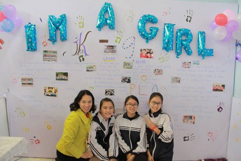 Đặc biệt, các trại truyền thông tại ngày hội được các em học sinh tự tay trang trí với những thông điệp về bảo vệ trẻ em gái.
