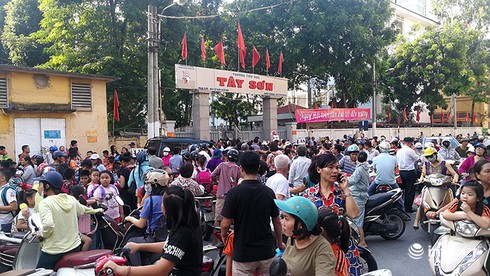Cảnh hỗn loạn trước cổng trường Tiểu học Tây Sơn chiều 6/9. |