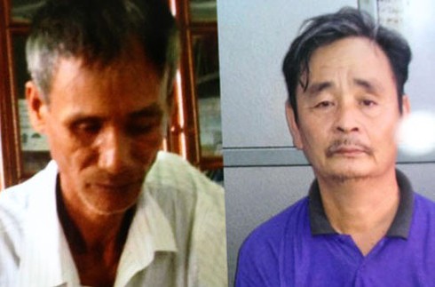 Hai người đàn ông trung niên Nguyên (trái) và Thọ bị bắt sau hơn 30 năm gây án giết người. |