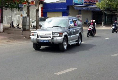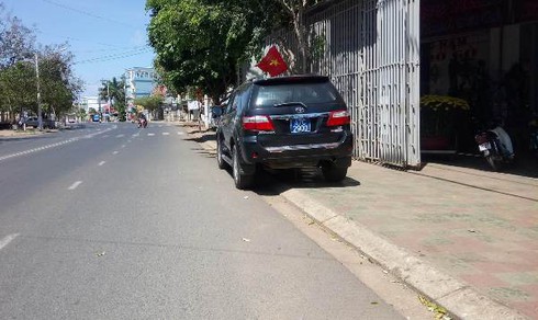 Xe biển xanh của Huyện ủy Ea Súp đã được bán đấu giá nhưng chưa sang tên du xuân trên đường Nguyễn Tất Thành (Ảnh chụp ngày mùng 3 Tết) |