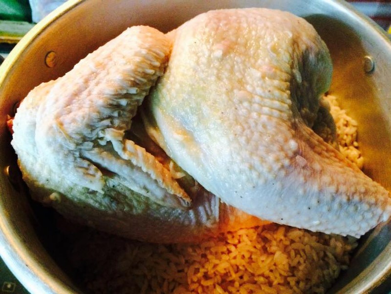 - Để nồi hấp thật nóng, các bạn cho gà và xôi cho vào xửng hấp, hấp chín xôi thì gà cũng chín khoảng 80% là đạt yêu cầu. Sau đó, để riêng gà và xôi.