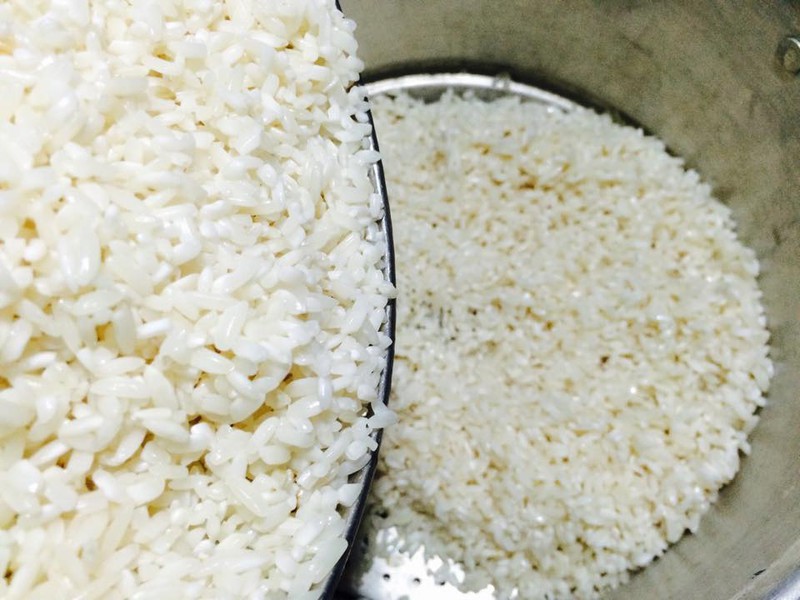 - Gạo nếp vo sạch, đem ngâm vài giờ với nước, chút muối, sau đó vớt ra giá, để ráo. Trộn gạo với bột nghệ để tạo màu cho xôi nếu bạn thích, còn không các bạn cứ để nguyên xôi trắng cũng rất ngon.