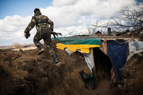 Một binh sĩ thuộc lực lượng ly khai tại miền đông Ukraine dời chiến hào đối diện với quân chính phủ Kiev hồi tuần trước. |