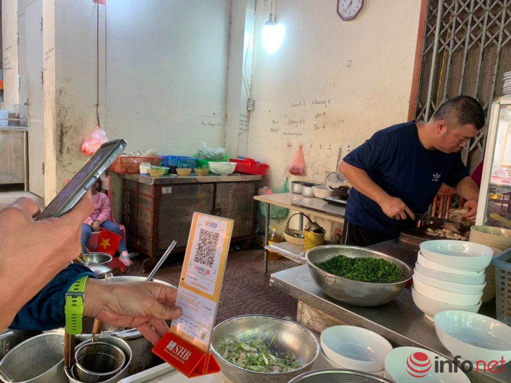 Anh Thành chia sẻ, khi tôi thanh toán tiền ăn thì anh chủ vẫn đang thái lòng phục vụ khách, việc thanh toán không dùng tiền mặt này thực sự tiện lợi cho cả khách lẫn chủ quán, bởi chẳng may quên ví như tôi hoặc chủ quán không cần dừng tay thái lòng để nhận tiền thanh toán từ khách.