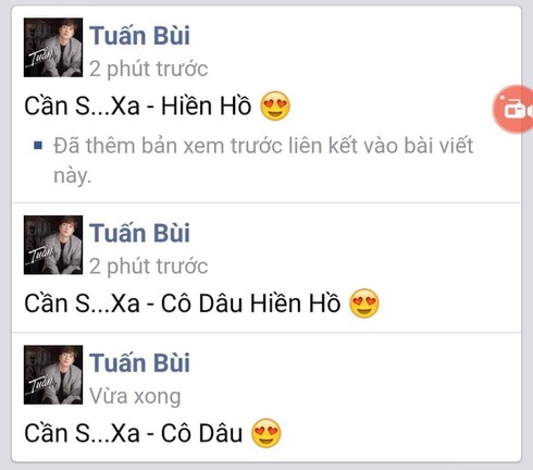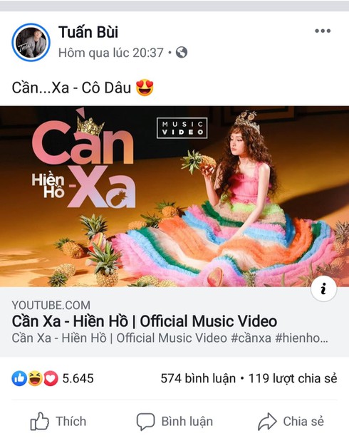 Không ngại bị dính nghi án hẹn hò, sau khi đến tận nơi họp báo ủng hộ Hiền Hồ ra mắt MV, anh chàng kiệm lời Bùi Anh Tuấn còn công khai share MV chính thức của “người yêu tin đồn” lên trang facebook cá nhân và còn tranh thủ gọi Hiền Hồ là “cô dâu” khiến dân tình lại được 1 phen chao đảo.
