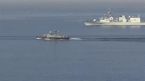 Hình ảnh được cho là cuộc rượt đuổi của tàu Nga và tàu Ukraine trên Biển Đen. Nguồn: Sohu. |