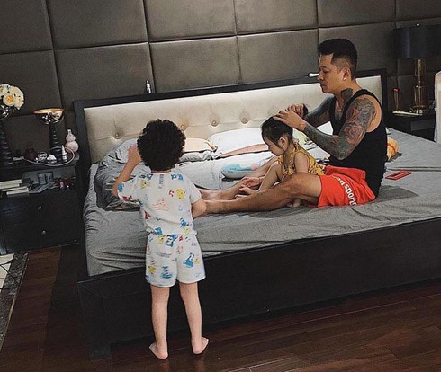 Những ngày không bận rộn đi diễn, Tuấn Hưng hỗ trợ vợ việc chăm sóc con cái.