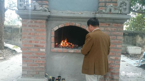 Hóa vàng tại đền Đô (Bắc Ninh) chiều 23/2/2018. |