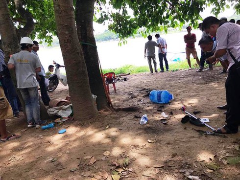Đến khoảng 13h15' cùng ngày, thi thể nạn nhân đã được các thợ lặn tìm thấy đưa lên bờ và lực lượng chức năng khám nghiệm tử thi.
