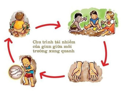 Hình minh họa chu trình tái nhiễm của giun giữa môi trường xung quanh |