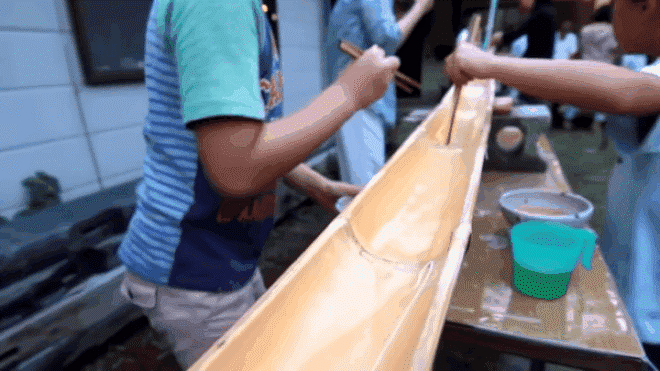 Mới đây trên mạng xã hội xuất hiện phiên bản "chị em" với món mì ống tre nổi tiếng, nhưng khác là món bún lại trôi trong rãnh nước, nhìn đã không ưng mắt chút nào.