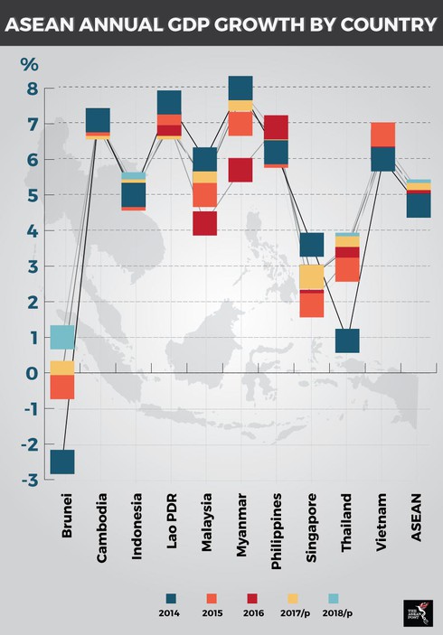 Tăng trưởng GDP hàng năm của các quốc gia thành viên ASEAN. |