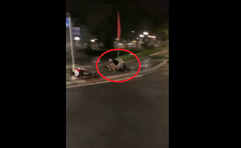 Theo clip, 2 nam thanh niên không đội mũ bảo hiểm chở nhau trên xe máy, đi với tốc độ nhanh trên đường. Tiếp đó, có người khác đi xe máy từ phía sau tới gần rồi dùng tay đánh nhẹ vào đầu nam thanh niên.