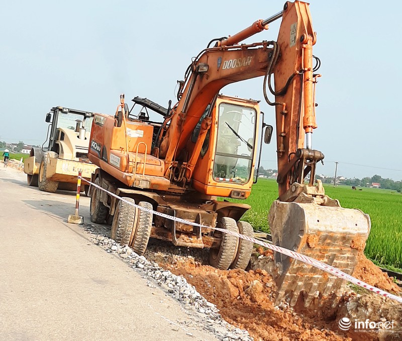 Chiều 20/4, theo ghi nhận của PV, phía đơn vị thi công đã tiến hành đưa máy múc, phương tiện để sửa chữa đoạn đường bị sụt lún, hư hỏng ở phía dưới cầu Dền (cầu bắc qua sông đào, thuộc địa bàn xã Văn Thành, huyện Yên Thành).