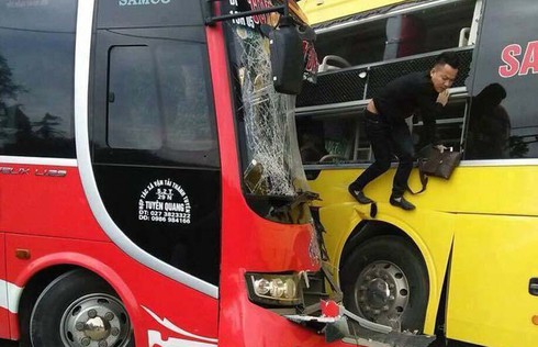 Tuyên Quang: Hai xe khách đối đầu, hành khách tán loạn phá kính thoát hiểm
