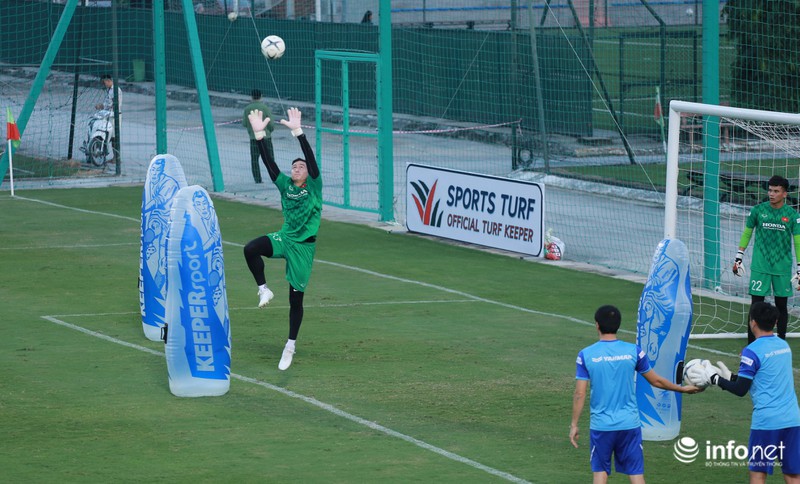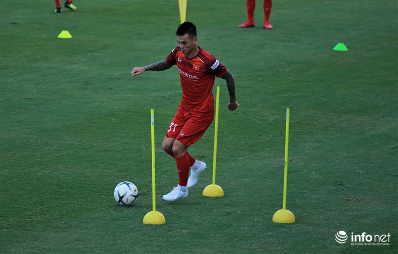 Với 25 cầu thủ, thầy Park cho các học trò tập chiến thuật, bắt đầu xây dựng đấu pháp, lên bộ khung đội hình để chuẩn bị 2 trận gặp UAE và Thái Lan sắp tới. |