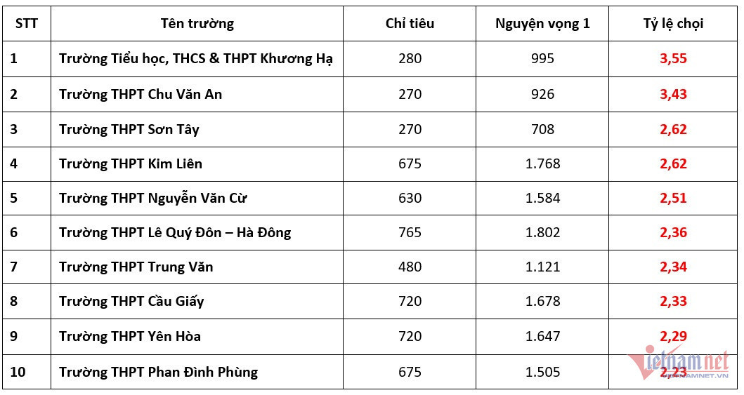 Nhưng năm nay, tỷ lệ chọi vào trường còn cao hơn cả Trường THPT Yên Hòa – ngôi trường có tỷ lệ chọi đứng đầu Hà Nội trong năm trước.