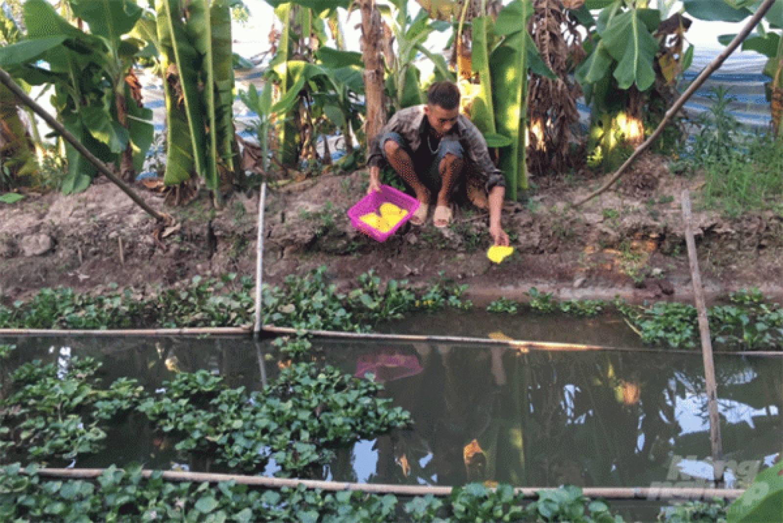 Thức ăn cho ốc nhồi là những sản phẩm từ nông nghiệp dễ kiếm như bí, mướp, bèo tấm... Ảnh: Hoàng Dân.
