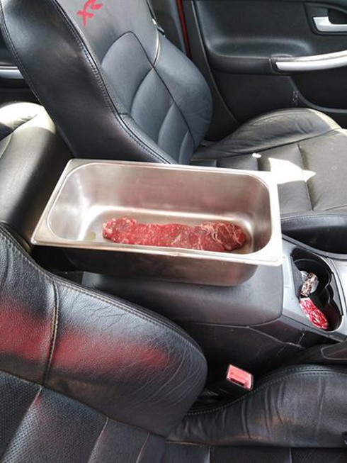 Miếng thịt bò đặt trong xe ô tô khi thời tiết ngoài trời hơn 45 độ C |