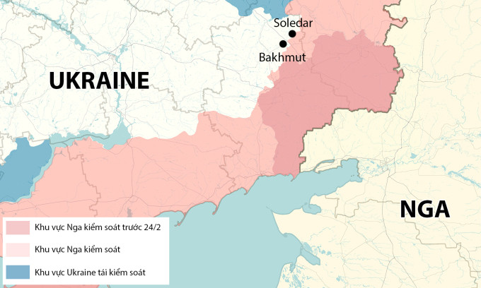 Denis Pushilin, người đứng đầu chính quyền Donetsk do Moskva bổ nhiệm, hôm 25/1 nói rằng Nga kiểm soát Soledar khiến lực lượng Ukraine chỉ còn một tuyến đường an toàn để tiếp cận Bakhmut, nhấn mạnh các đơn vị Nga đang tìm cách cắt đứt tuyến tiếp vận của đối phương và lập thế gọng kìm bao vây Bakhmut.