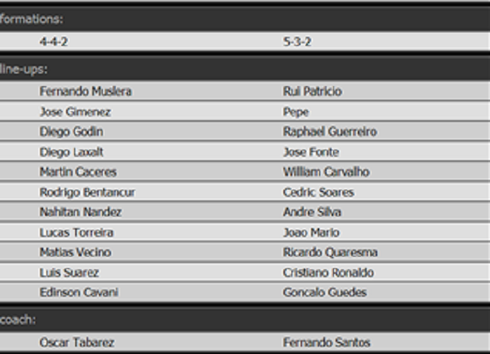 Đội hình ra sân dự kiến của 2 đội Uruguay và Bồ Đào Nha:
