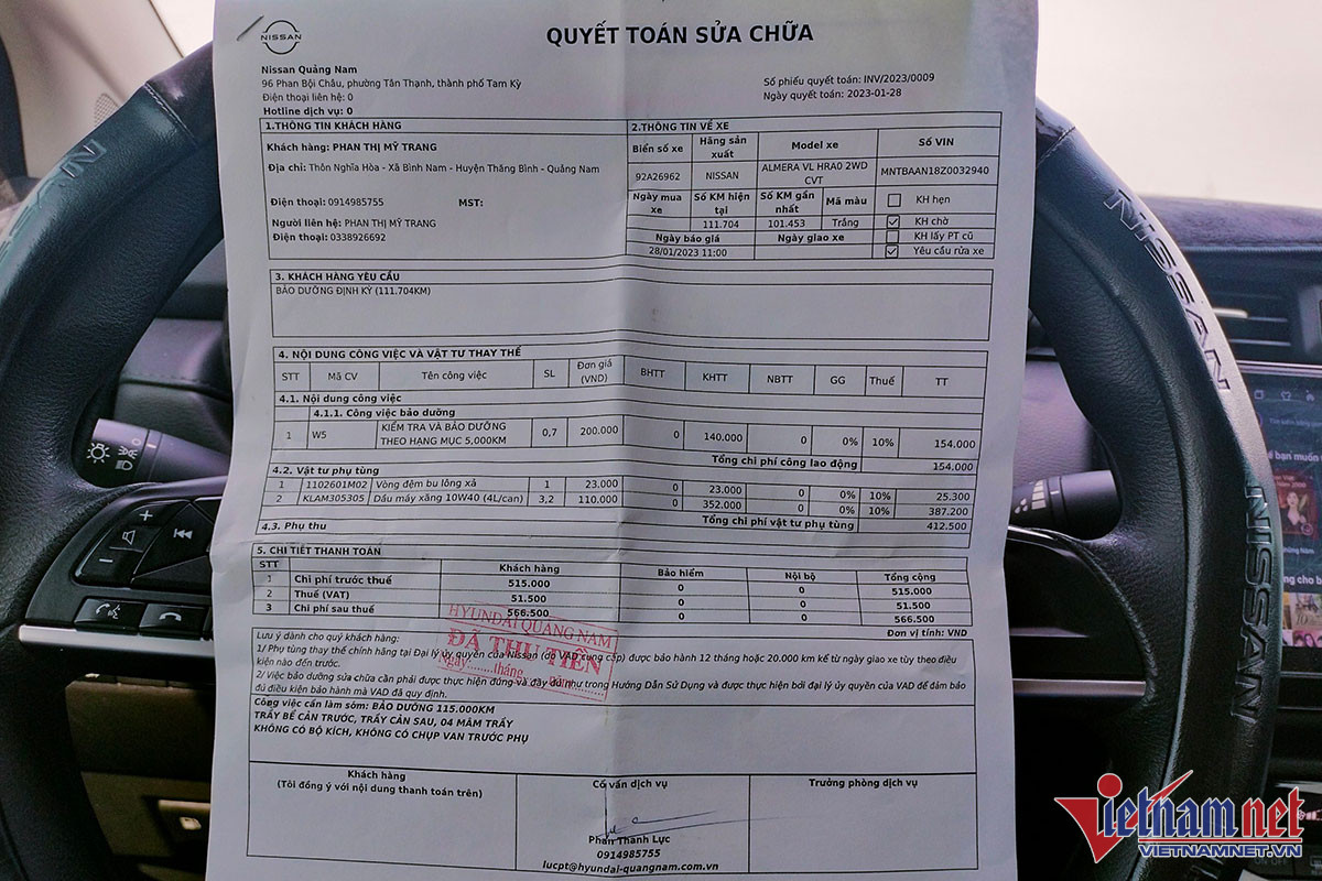 Trước đó, anh Duy cũng đã từng lái xe taxi, chủ yếu chạy Toyota Vios nên cũng hay phải mang xe đi bảo dưỡng tại trạm dịch vụ của Toyota. Do đó anh đánh giá chi phí bảo dưỡng với xe Nissan Almera là rất hợp lý, phù hợp cho tài xế chạy dịch vụ.