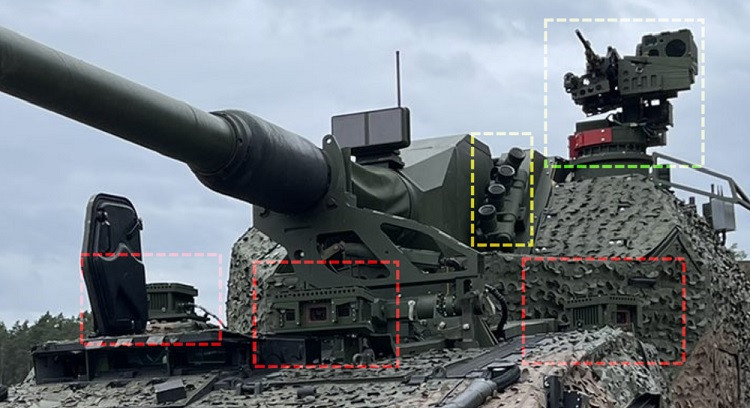 Do có khung gầm là xe Boxer, nên vỏ giáp của loại pháo này có thể chống được sức công phá của đạn cỡ 14,5mm hay những mảnh bom văng.