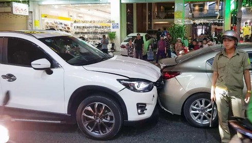 Lộc đuổi theo đến giao lộ Nguyễn Trãi – Trần Văn Khéo thì tăng tốc, đụng nhiều lần vào đuôi xe của anh Nam.