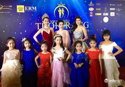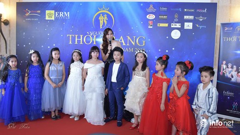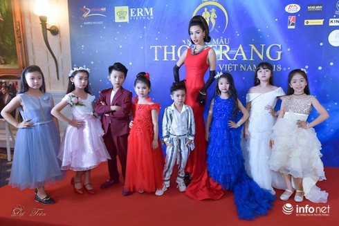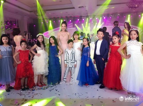 Cô Valentines Vân Nguyễn và các mẫu nhí trong đêm Chung kết Người mẫu Việt nam 2018.