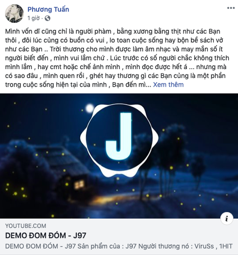 Bên cạnh việc tung đoạn demo "Đom đóm", Jack cũng có nhiều lời nhắn gửi đến người hâm mộ. Nam ca sĩ gốc Bến Tre cho hay nhiều ngày qua dù nằm trong không gian chật hẹp nhưng được trò chuyện với nhiều người, được hỏi thăm và hơn hết là được sống là chính mình: "1 tuần vừa qua nằm trong không gian chật hẹp, nhưng mà mình hài lòng, vì được nói, được tiếp xúc nói chuyện, nhận được những lời hỏi thăm, động viên, mình không rep hết được nhưng mình được sống là chính mình, vui ghê luôn".