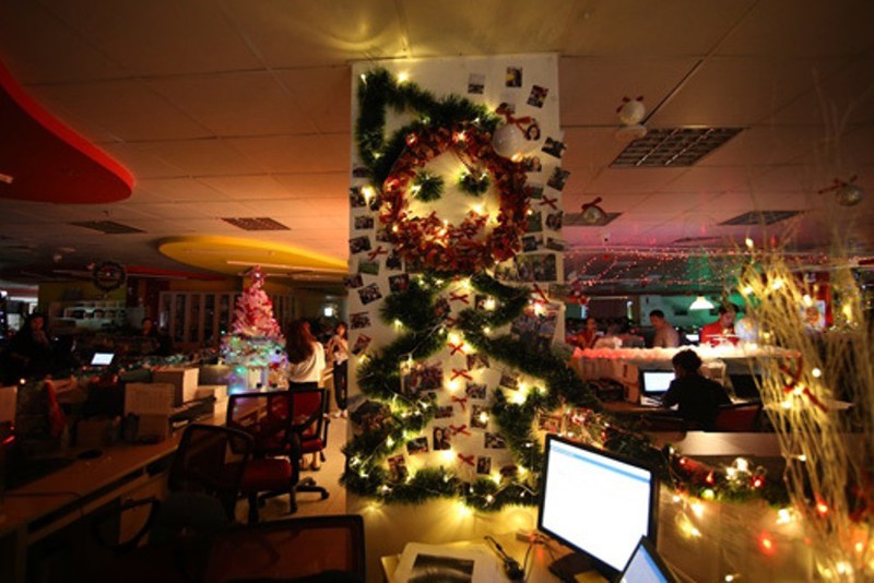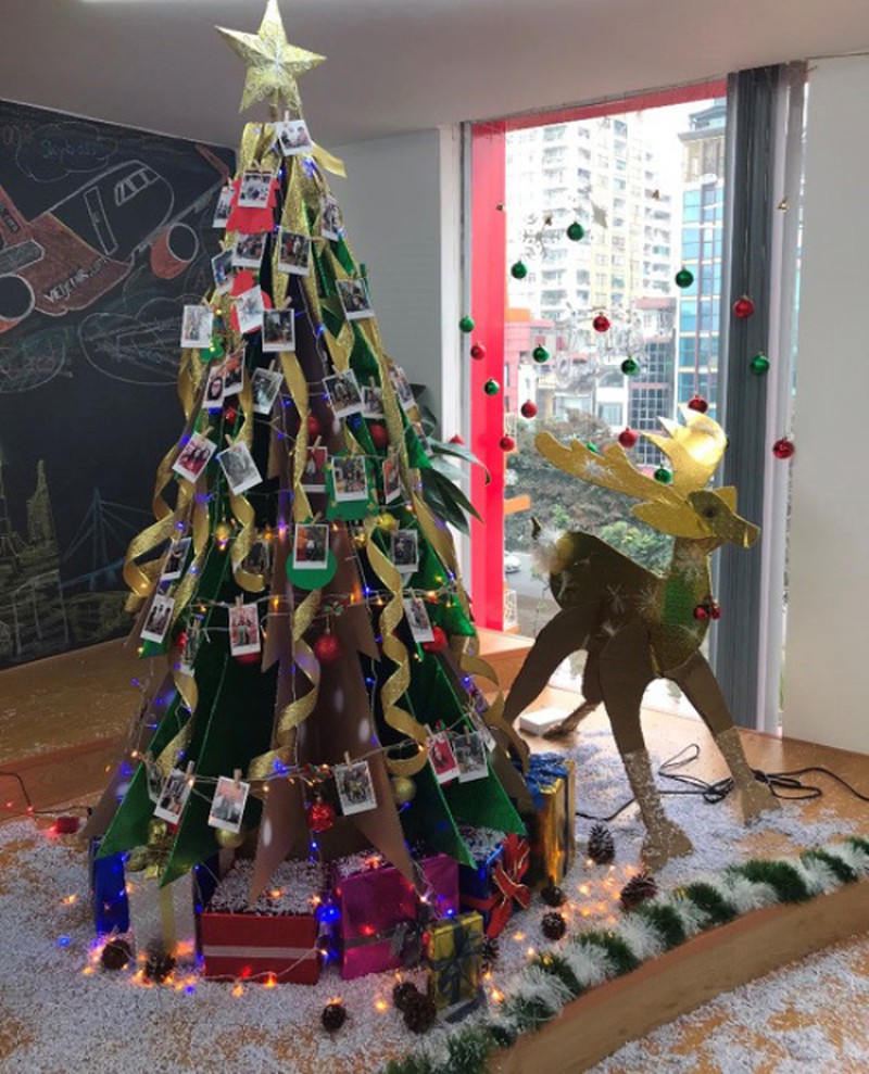Cây thông được các nhân viên văn phòng miền Bắc trang trí đầy sáng tạo. |