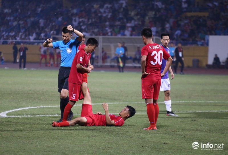 Những phút cuối trận đấu cầu thủCLB 25-4, liên tục nằm sân để câu giờ. |