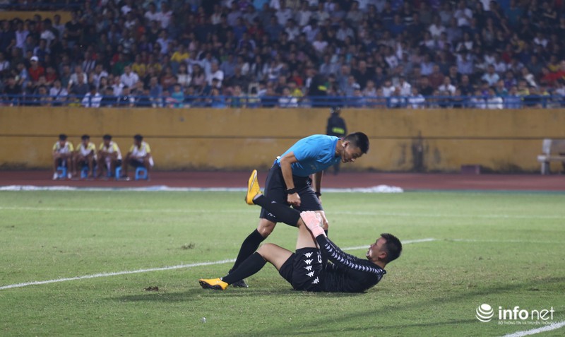 CLB Hà Nội phải thay người bất đắc dĩ, khi thủ môn Văn Công bịchấn thương. |